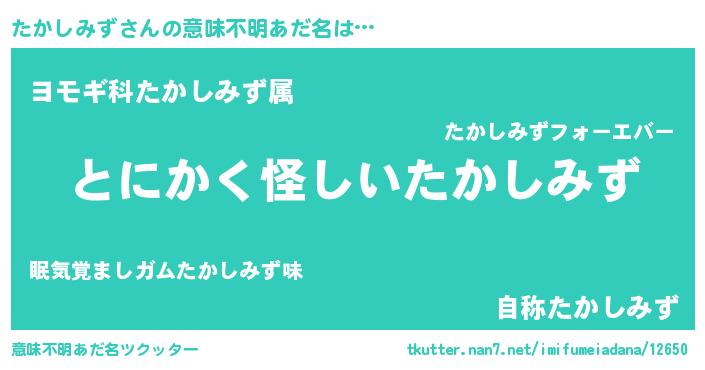 | 男性向けラノベタイトル風あだ名 | 『たかしみずの嫁は女の子じゃないと思った?』 |