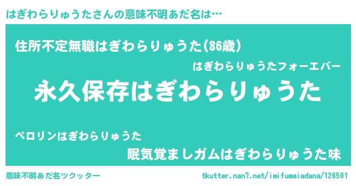| 胡散臭い通販商品みたいなあだ名 | 『前代未聞の健康食品…その名も「はぎわらりゅうた」』 |