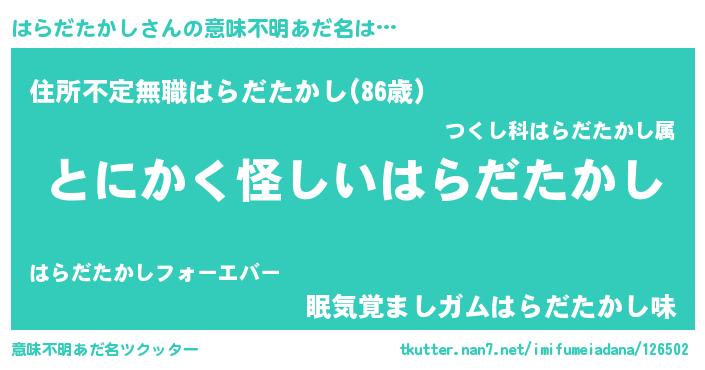 | 胡散臭い通販商品みたいなあだ名 | 『信頼と実績のネックレス…その名も「はらだたかし」』 |