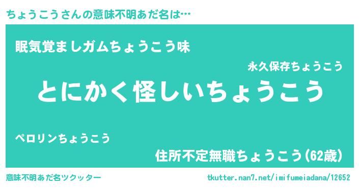 | 男性向けラノベタイトル風あだ名 | 『ちょうこうの嫁は女の子じゃないと思った?』 |