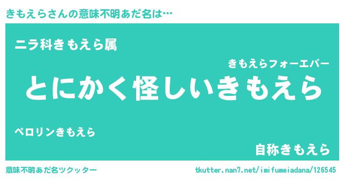 | ヒーロー風カッコイイあだ名 | 『黄金騎士キモ』『究極戦士キモエラ』 |