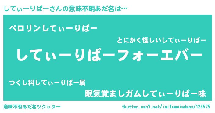 | ヒーロー風カッコイイあだ名 | 『ウルトラしてぃーりばーマン』 |