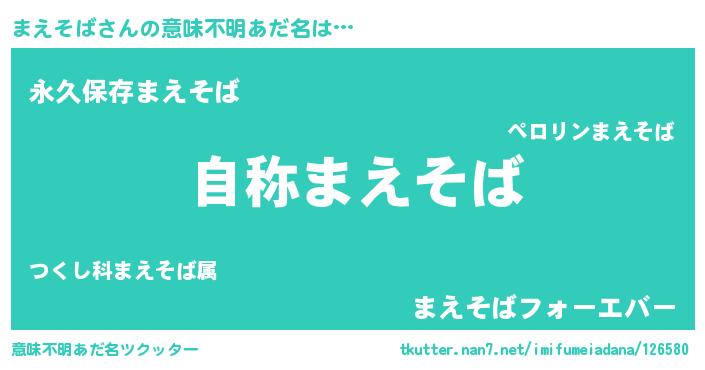 | ヘコむあだ名 | 『まえそば(小並感)』『酢こんぶ』 |
