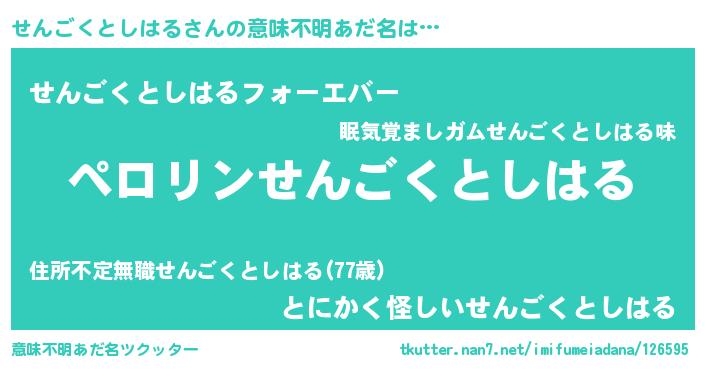 | ヒーロー風カッコイイあだ名 | 『スーパーセンゴクトシハル』 |