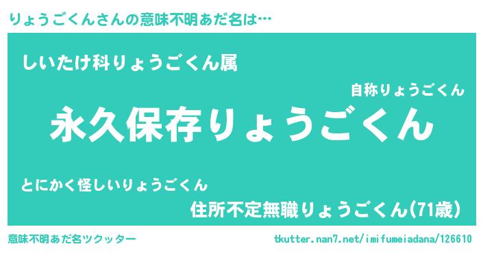 | ヘコむあだ名 | 『りょうごくん(遠い目)』『りょ太郎』 |