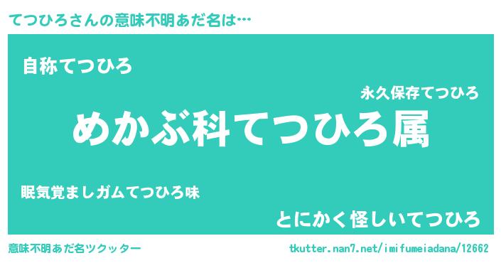 | 男性向けラノベタイトル風あだ名 | 『テツヒロスレイヤー』 |