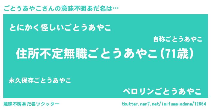 | 伝説のあだ名 | 『覚醒した遊び人ごとうあやこ』 |