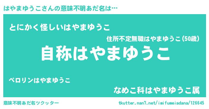 | ヒーロー風カッコイイあだ名 | 『究極戦士ハヤマユウコ』『炎刃騎士ハヤ』 |