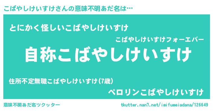 | 欧米人風あだ名 | 『ケンブリッジこばやしけいすけ』 |