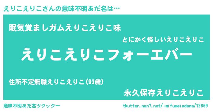 | 男性向けラノベタイトル風あだ名 | 『やはりえりこえりこの青春ラブコメはまちがっている 』 |