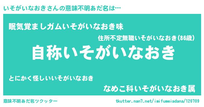 | 胡散臭い通販商品みたいなあだ名 | 『芸能人もオススメするアガリクス…その名も「いそがいなおき」』 |