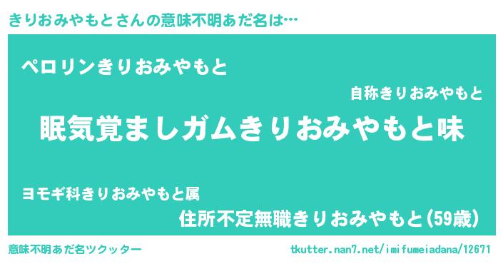 | 男性向けラノベタイトル風あだ名 | 『ノーゲーム・ノーキリオミヤモト』 |