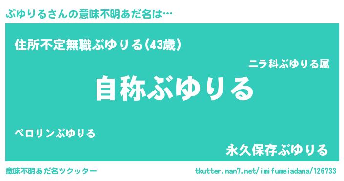 | ヘコむあだ名 | 『ぶゆりる(震え声)』『ぶゆにゅー』 |