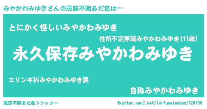 | ヘコむあだ名 | 『みやかわみゆき(笑)』『みやっぺ』 |