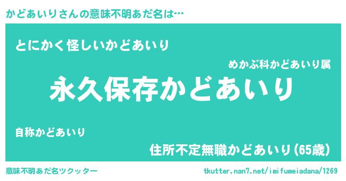 | ヘコむあだ名 | 『かどあいり(苦笑)』『かどを』 |