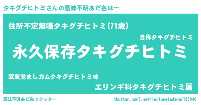 | 伝説のあだ名 | 『古文書に記された勇者タキグチヒトミ』 |