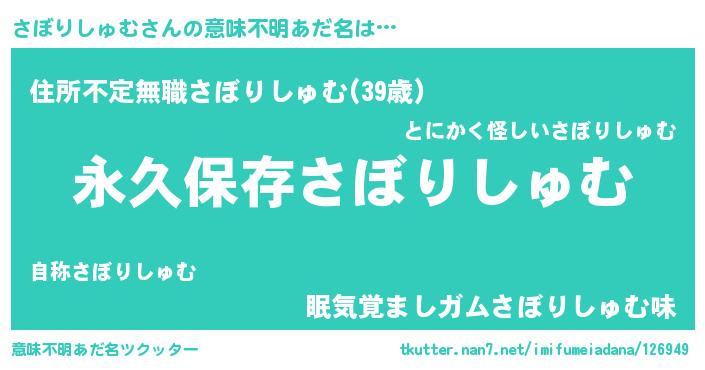| 男性向けラノベタイトル風あだ名 | 『さぼりしゅむという概念が存在しない退屈な世界 』 |