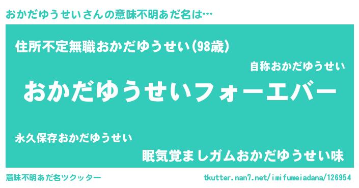 | 欧米人風あだ名 | 『おかだゆうせいクリステル』 |