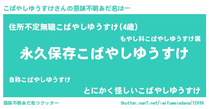 | ヘコむあだ名 | 『こばやしゆうすけ(笑)』『こばお』 |