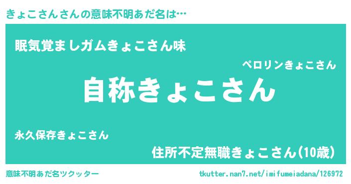 | 欧米人風あだ名 | 『ケンブリッジきょこさん』 |