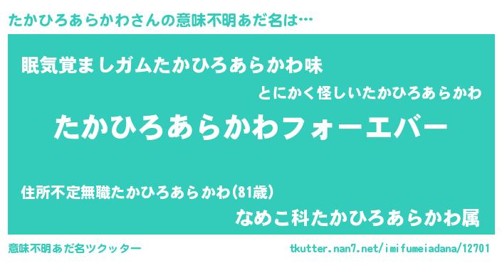 | ファンタジー風あだ名 | 『エターナルタカヒロアラカワー』 |