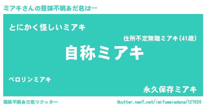 | ヘコむあだ名 | 『ミアっちょ』『ミアキ(小並感)』 |