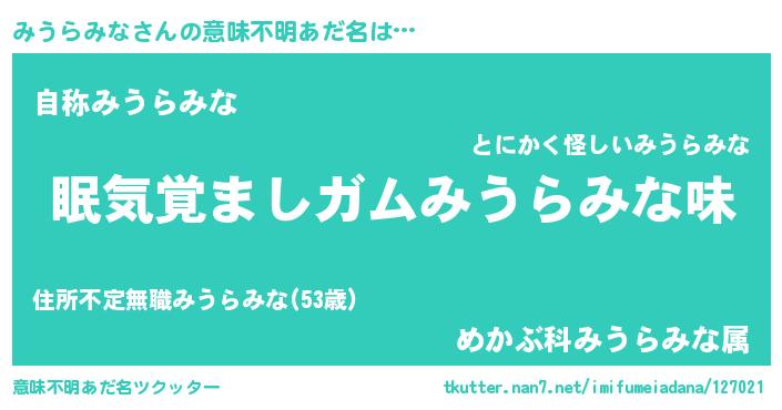 | 伝説のあだ名 | 『人々から恐れられる錬金術士みうらみな』 |