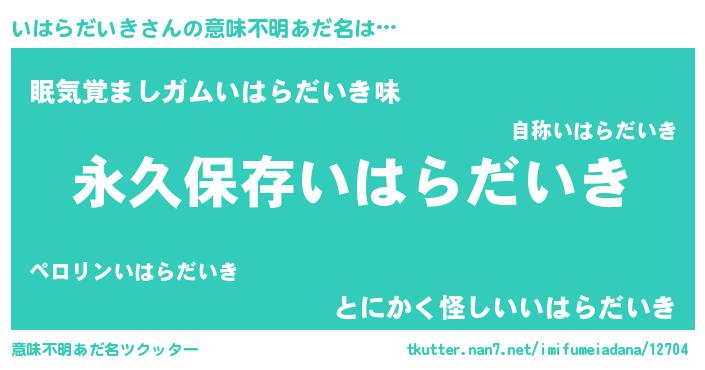 | 胡散臭い通販商品みたいなあだ名 | 『来世でも幸せになれる水素水…その名も「いはらだいき」』 |
