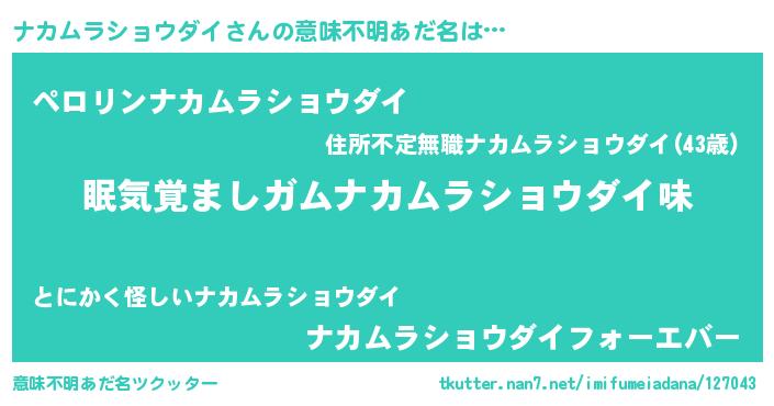 | 欧米人風あだ名 | 『ダニエルナカムラショウダイ』 |