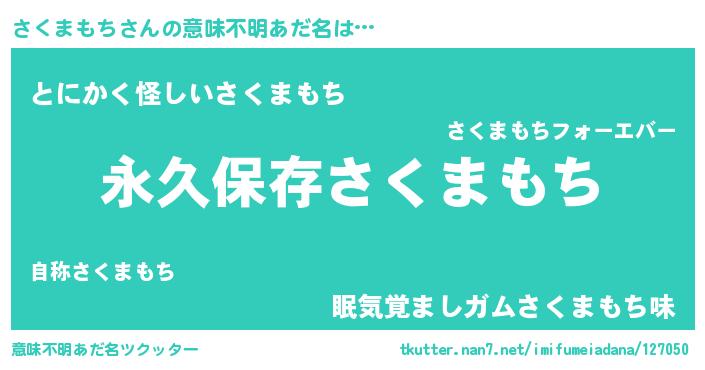 | 男性向けラノベタイトル風あだ名 | 『さくまもちという概念が存在しない退屈な世界 』 |