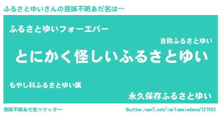 | 男性向けラノベタイトル風あだ名 | 『ふるさとゆいの嫁は女の子じゃないと思った?』 |