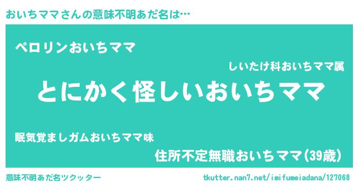 | 欧米人風あだ名 | 『ウサインおいちママ』 |
