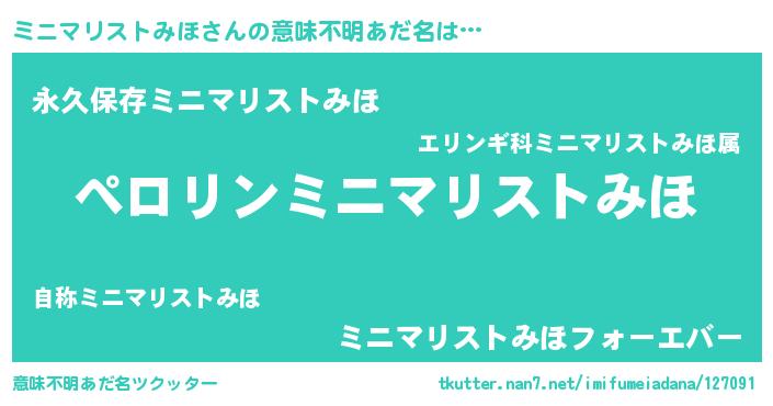 | ヘコむあだ名 | 『ミニにー』『ミニマリストみほ(遠い目)』 |