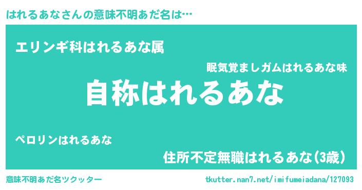 | 恥ずかしいあだ名 | 『ハレルアナデラックス』『ハレリンリン』 |