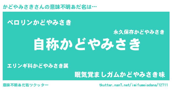 | ヘコむあだ名 | 『かどにゅー』『かどやみさき(笑)』 |