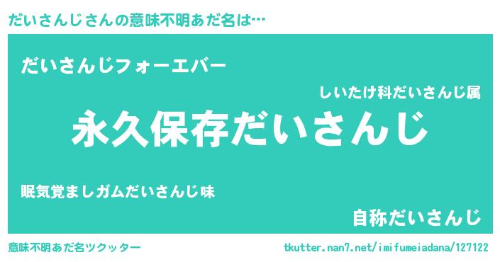 | 男性向けラノベタイトル風あだ名 | 『誰もが恐れるあのだいさんじが、ぼくの専属メイドになるようです。』 |
