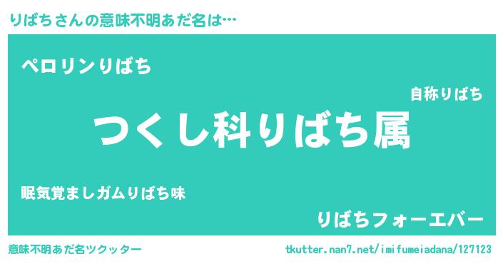 | ヘコむあだ名 | 『りばっふぃ~』『つくし』 |