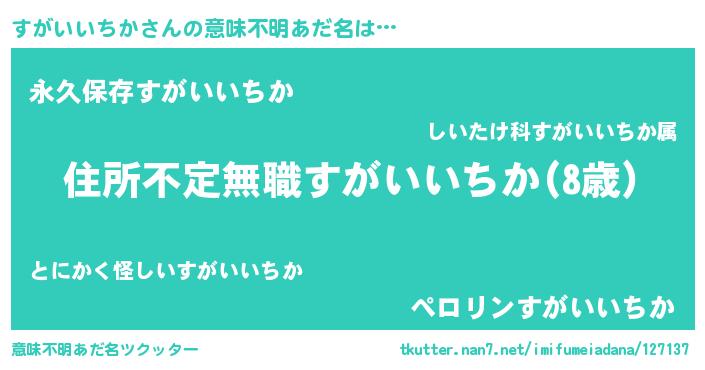 | 胡散臭い通販商品みたいなあだ名 | 『あなたにだけ特別に提供する100年もののヴィンテージワイン…その名も「すがいいちか」』 |