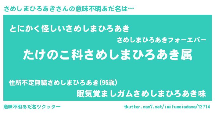 | 胡散臭い通販商品みたいなあだ名 | 『伝統あるサプリメント…その名も「さめしまひろあき」』 |