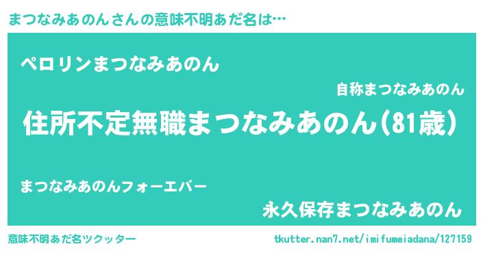 | ヘコむあだ名 | 『まつもー』『まつなみあのん(小並感)』 |