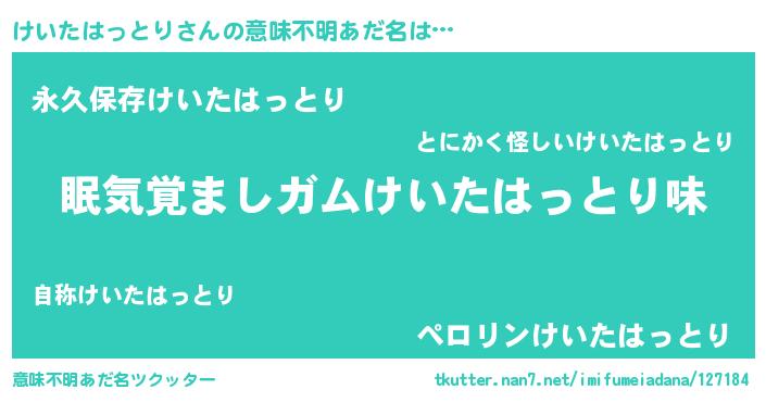 | 女子向けラノベタイトル風あだ名 | 『けいたはっとり恋絵巻』 |