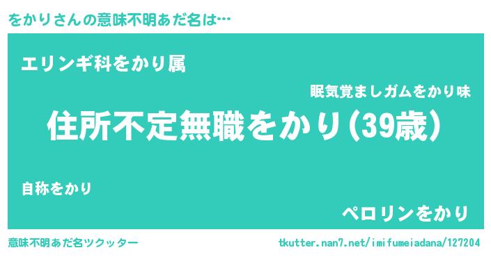 | 欧米人風あだ名 | 『をかり・ステッグマイヤー』 |