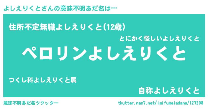 | 欧米人風あだ名 | 『マイケルよしえりくと』 |