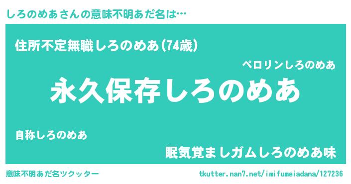 | 女子向けラノベタイトル風あだ名 | 『異世界でカフェしろのめあを開店しました。』 |