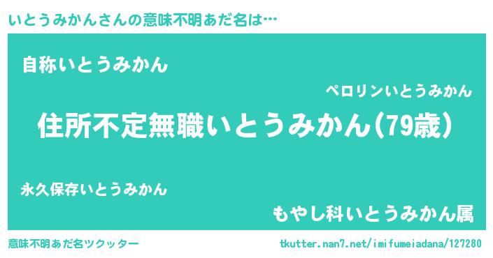| 女子向けラノベタイトル風あだ名 | 『乙女ゲームの破滅フラグしかない悪役いとうみかんに転生してしまった…』 |