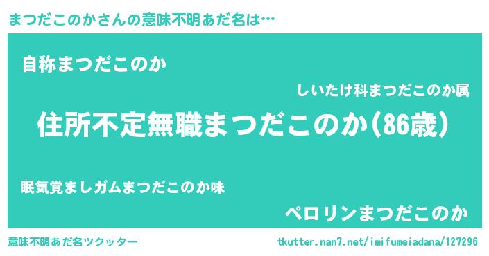 | 男性向けラノベタイトル風あだ名 | 『うちのまつだこのかが世界を掌握している!』 |
