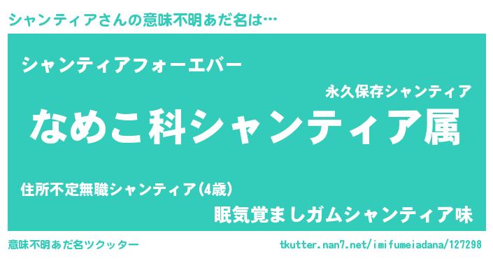 | ヘコむあだ名 | 『なまこ酢』『シャンティア(爆)』 |