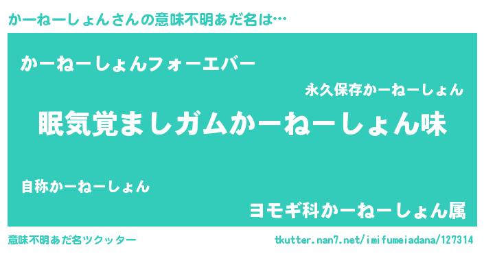 | 料理風あだ名 | 『鮭とかーねーしょんのクリームパスタ』 |