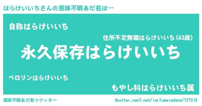 | 伝説のあだ名 | 『古より伝わる吟遊詩人はらけいいち』 |