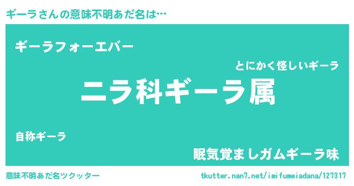 | 女子向けラノベタイトル風あだ名 | 『ギーラの玉の輿計画!』『ギーラ恋絵巻』 |